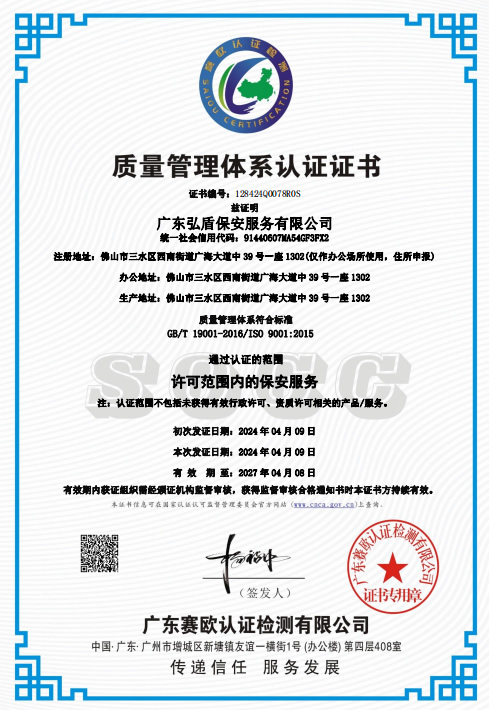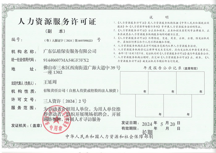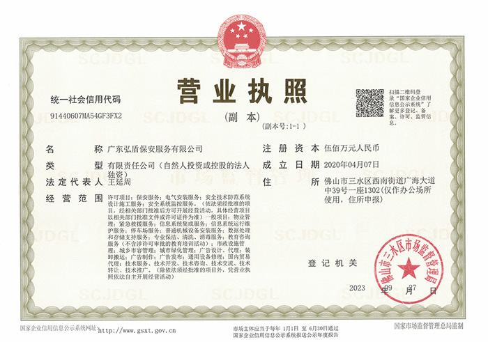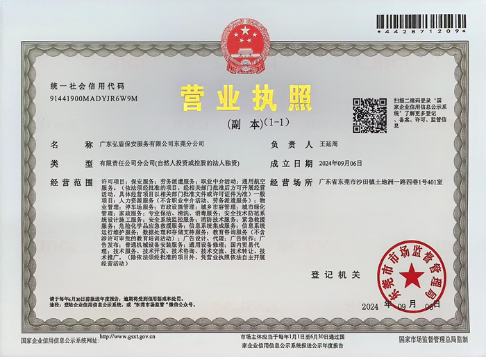 - 廣東弘盾保安服務(wù)有限公司東莞分公司是經(jīng)東莞市公安局嚴(yán)格審核,廣東省公安廳批準(zhǔn)頒發(fā)《保安服務(wù)許可證》,在東莞市工商行政管理機(jī)關(guān)登記注冊(cè)的,依法開(kāi)展門(mén)衛(wèi)、巡邏守護(hù)、秩序維護(hù)、隨身護(hù)衛(wèi),安全檢查等綜合安保服務(wù)的專業(yè)保安服務(wù)公司... [詳細(xì)介紹]